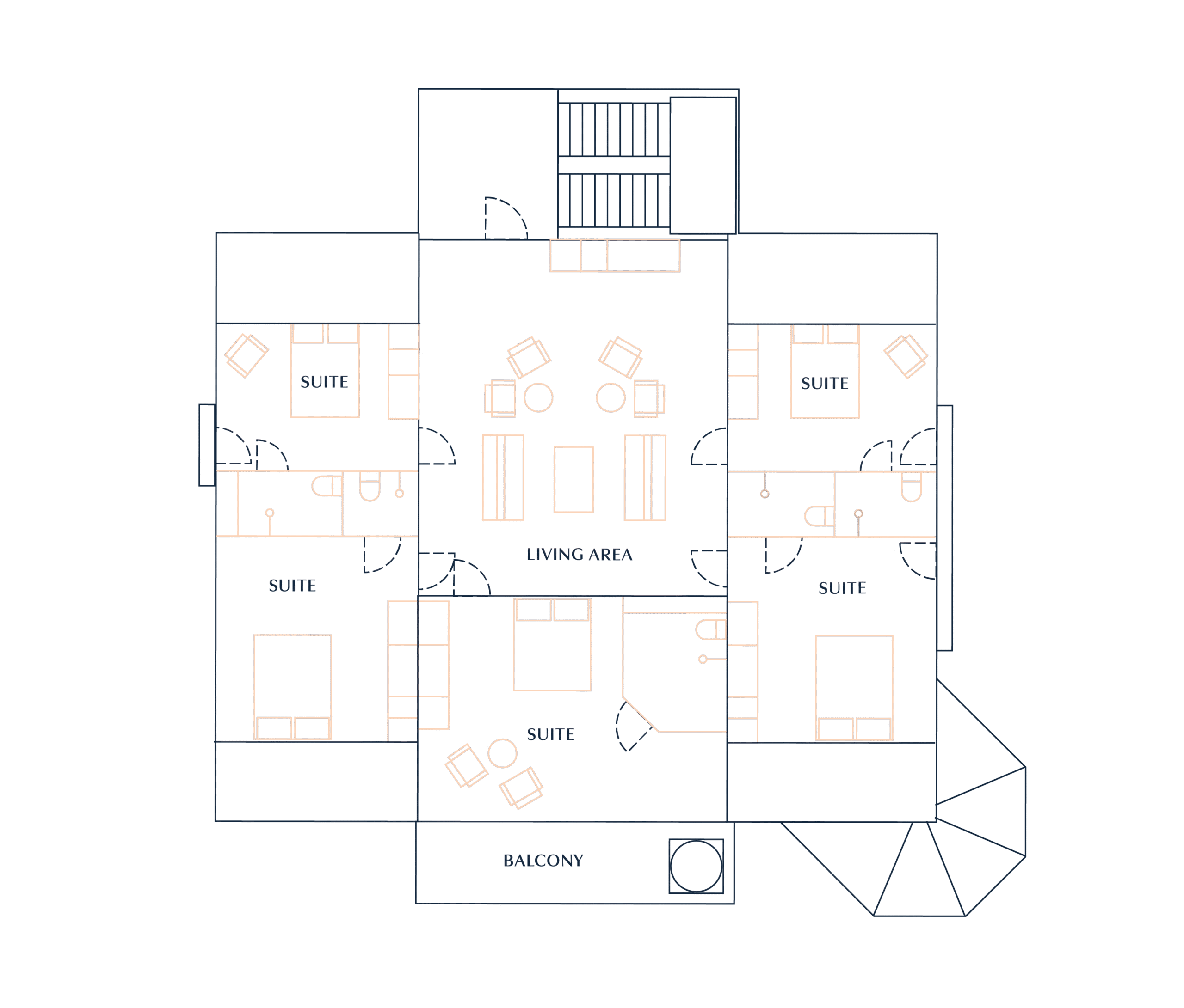 Living Areas – Spacious lounge areas with fireplaces and panoramic views.