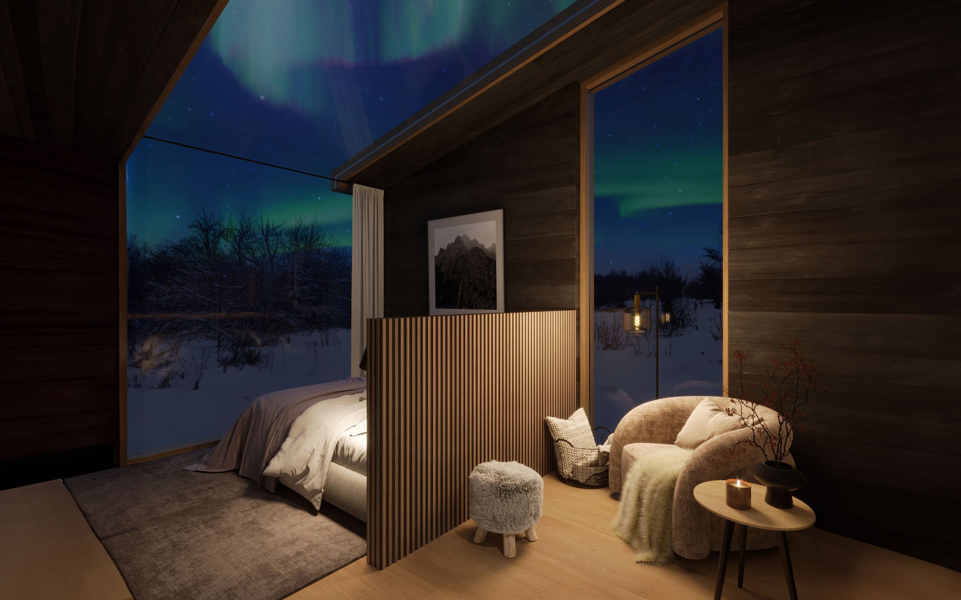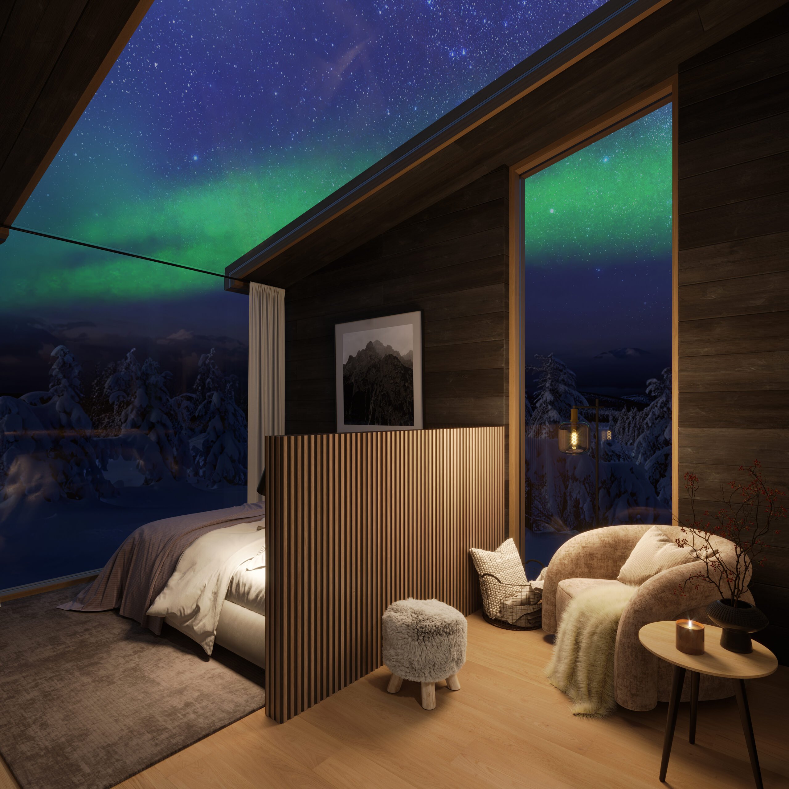 Sleep beneath the northern sky and watch the aurora from your bed.